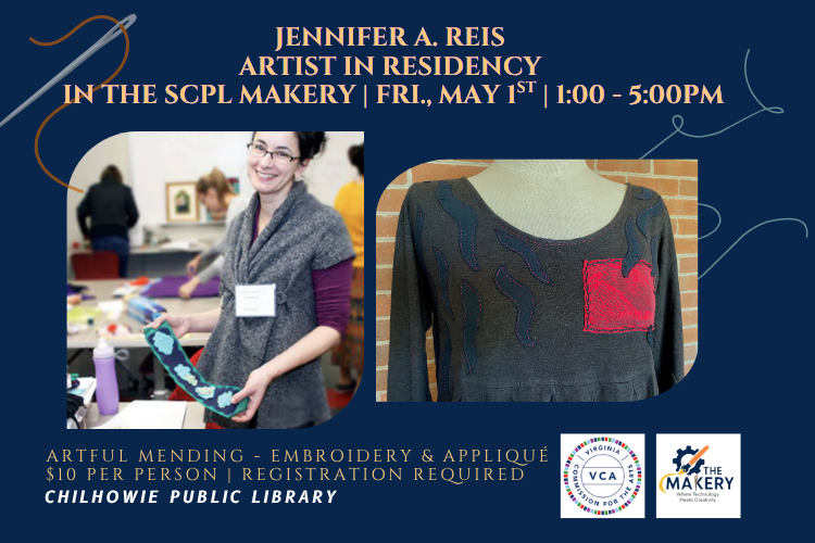 Artful Mending T-shirt Embroidery and Appliqué Workshop with Jennifer A. Reis in the SCPL Makery at Chilhowie Public Library