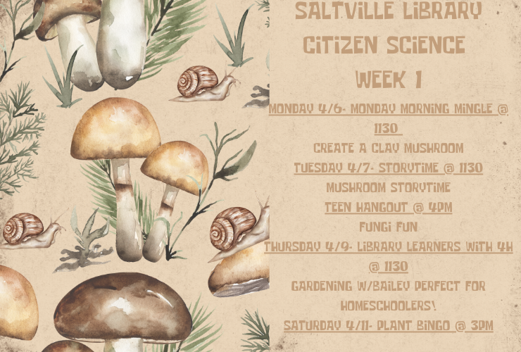 Join us at Saltville Public Library as we launch Citizen Science Month with hands-on activities focused on observing, documenting, and learning about mushrooms right here in our community. Whether you’re a nature lover, homeschool family, teen explorer, or just mushroom-curious, there’s something for everyone!