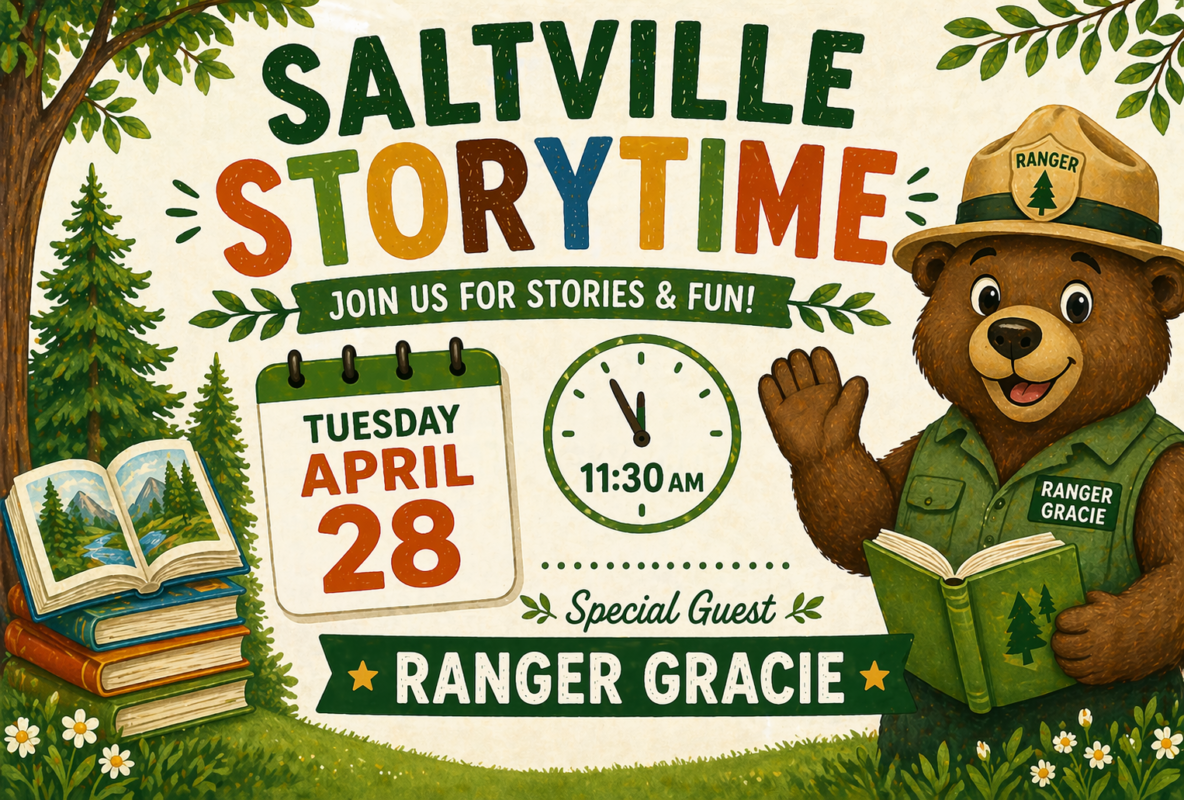 Saltville Storytime with Ranger Gracie Date: April 28, 2026 Add to Calendar Google CalendarMicrosoft OutlookApple CalendarDownload Time: 11:30 am - 12:30 pm Calendar: Saltville Branch Join us for Saltville Storytime with special guest Ranger Gracie!